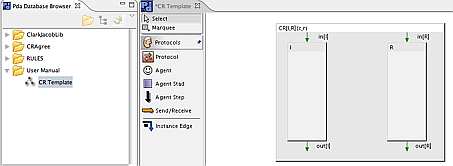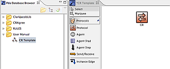 The next figure shows where you are after creating a new protocol diagram called CR Template in your Browser and opening it for edit.
